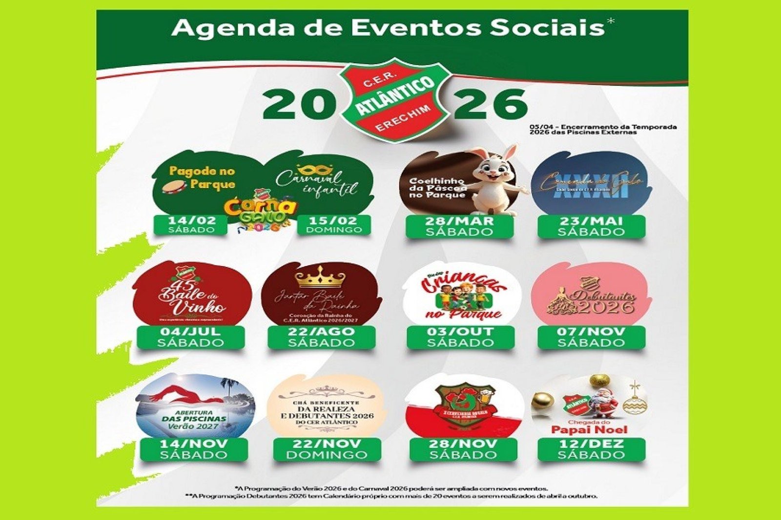 As rainhas do CER Atlântico que integram a Realeza 2025 são: Eloisa Onofre, Rainha do Clube; Fernanda Romani Paraboni, Rainha do Baile do Vinho; e Luísa Canova Dalfovo, Rainha Infantil.