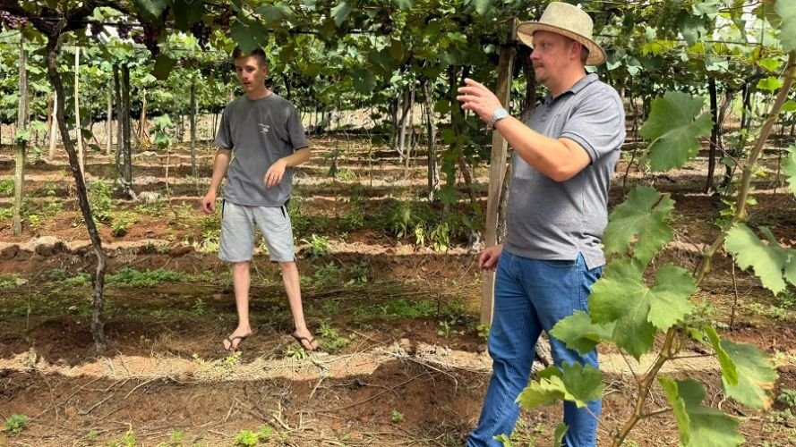 Nesta quinta-feira (15), o prefeito Paulo Polis e o secretário de Agricultura, William Racoski, visitaram a propriedade do jovem produtor Jonatan Bandiera, beneficiado com R$ 5 mil do Programa Pró-Jovem Rural. O recurso está sendo utilizado para a compra de mudas e a instalação de um sistema de irrigação em um parreiral de uva, contribuindo para a qualificação da produção e maior eficiência no manejo da mão de obra.