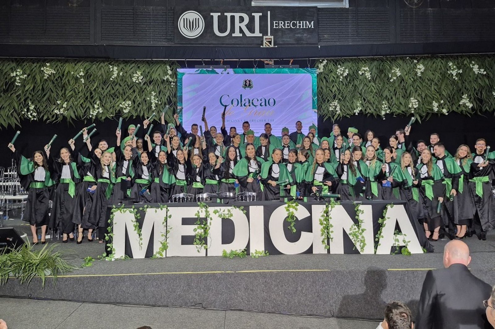 Presentes, ainda, o Coordenador do Curso, Darllan Fabiani da Silva Santos; o Secretário Municipal de Cultura, Esporte e Economia Criativa, Wallace Soares; o Presidente da Câmara de Vereadores, Carlos Antônio Zanini; a representante do Conselho de Arquitetura e Urbanismo do Rio Grande do Sul, Ariane Pedrotti de Ávila Dias; a representante do Instituto de Arquitetos do Brasil (IAB), Núcleo de Erechim, Gabriela Dalbosco; professores, familiares e convidados.