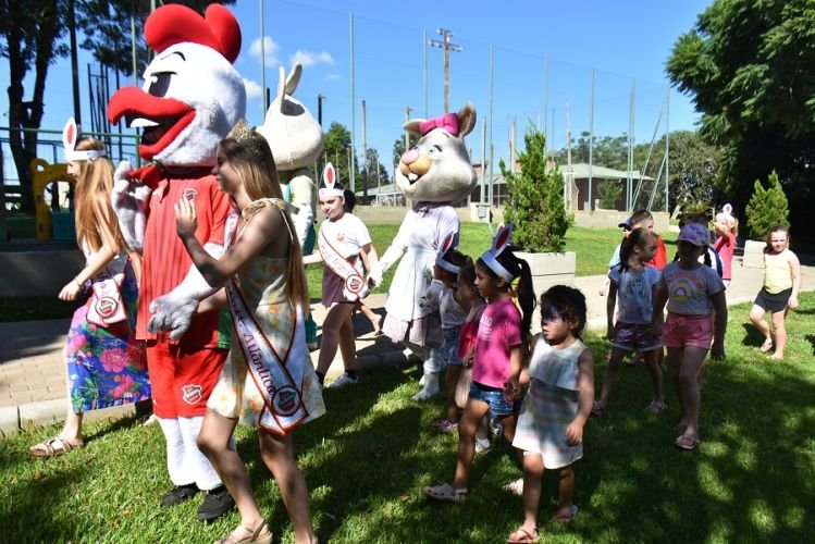 Logo no início da tarde, o público foi recepcionado pelos simpáticos personagens do casal de coelhinhos e o personagem Galo, que garantiram fotos, abraços e muita animação. A presença dos mascotes chamou a atenção das crianças, que aproveitaram cada momento ao lado dos personagens.