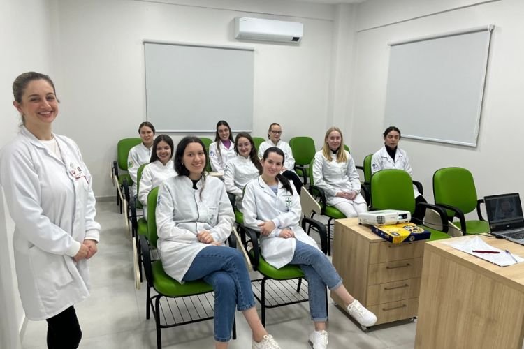 Outra temática do curso tratou do funcionamento de agência transfusional e o papel dos profissionais em agência transfusional e atividades envolvidas no recebimento e dispensação dos hemocomponentes e procedimentos regulatórios no ciclo do sangue. Os temas foram ministrados pela Farmacêutica Bioquímica da Agência Transfusional da Fundação Hospitalar Santa Terezinha, Thanise Malman Serraglio, e a Biomédica do Hospital de Caridade, Sara Ângela Groff Nieves.