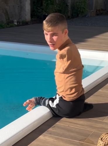(Atividade de Tiago na Piscina da casa – Foto: Arquivo Pessoal Tiago Linck)
