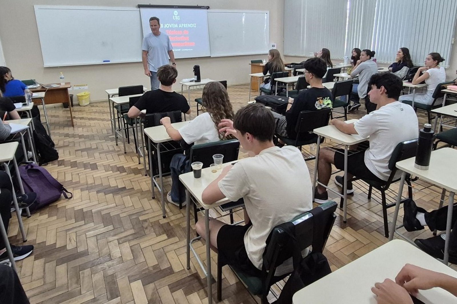 Estudantes do Curso de Administração da URI (turma 2024), participaram, na quarta-feira, 29 de outubro, de uma atividade prática vinculada à disciplina de logística, na cadeia de Suprimento, ministrada pelo professor Darci Kuiawinski.