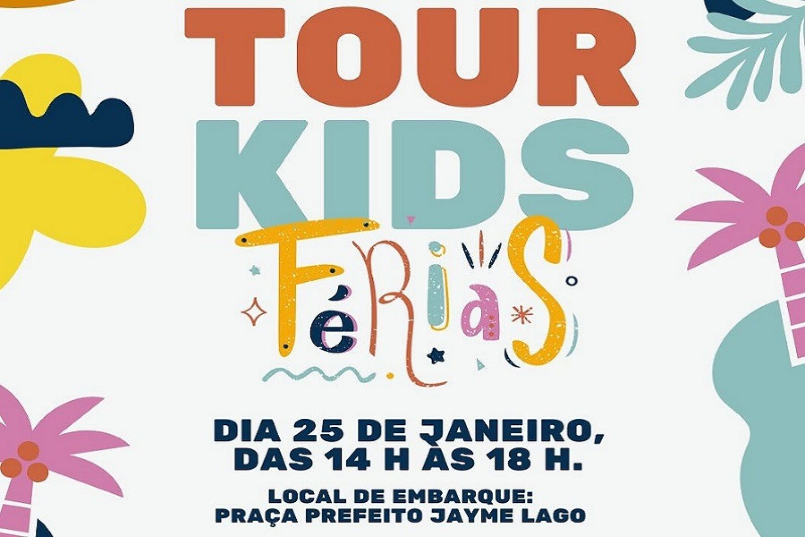 No dia 25 de janeiro, das 14h às 18h, a Linha Turismo Erechim convida os pequenos para curtir as férias do jeito mais divertido possível, com embarque na Praça Prefeito Jayme Lago o Tour Kids inclui brinquedos infláveis, feirinha do artesanato e muito mais.