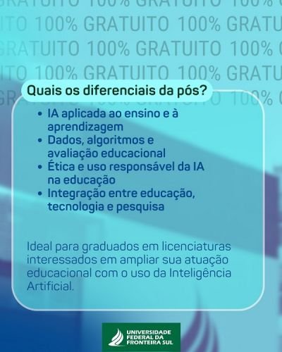 👉 Faça uma pós-graduação na UFFS e potencialize sua trajetória profissional com inovação, tecnologia e compromisso com a educação pública.