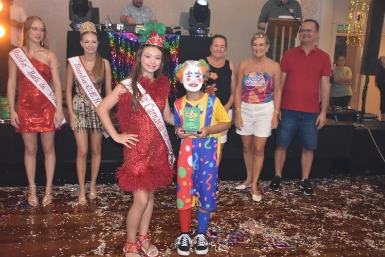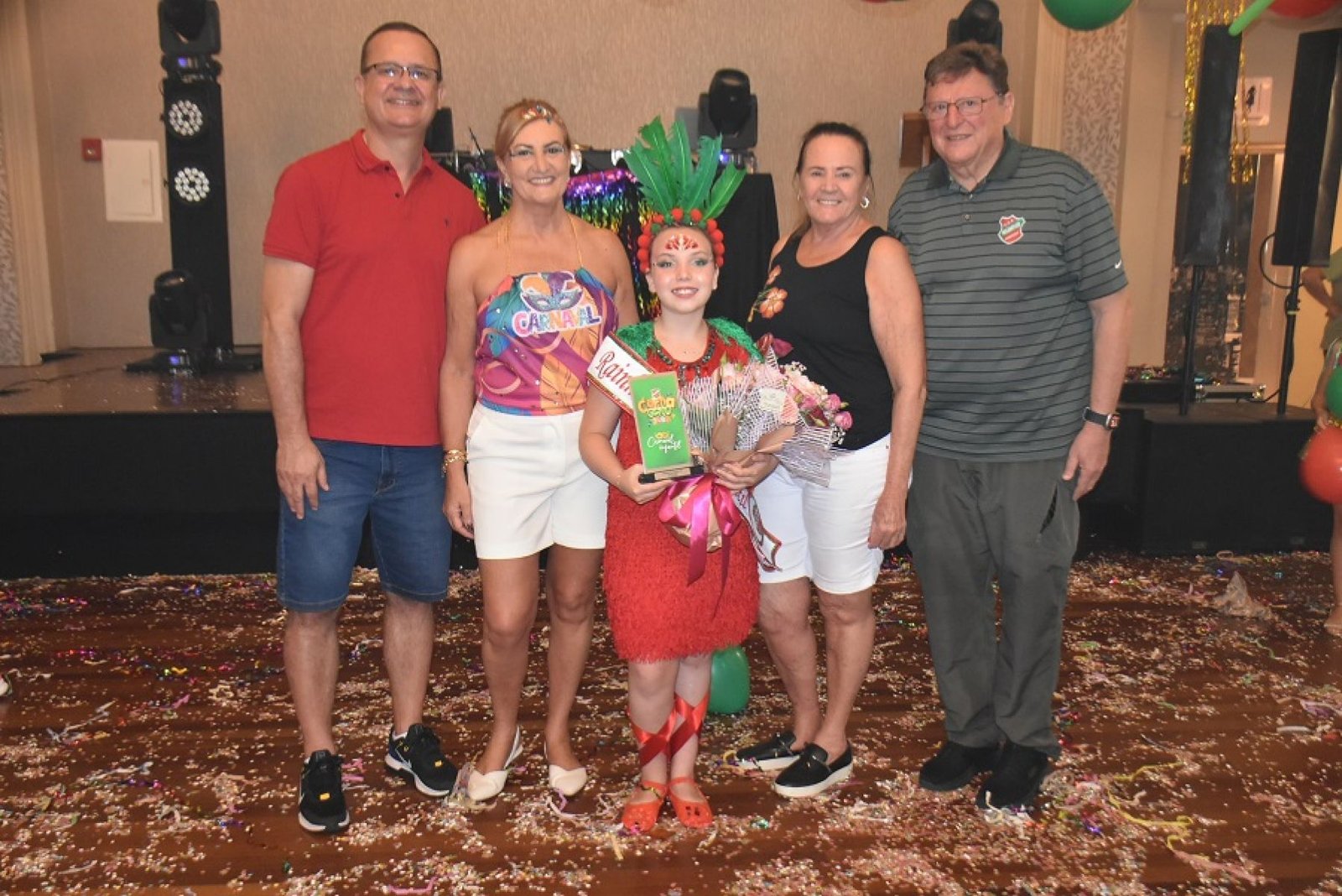 O CER Atlântico viveu um fim de semana de comemorações com a realização do CarnaGalo 2026. O ponto alto da programação ocorreu na tarde deste domingo (15), com a escolha da Rainha Infantil 2026. A eleita foi Sophia Badalotti, que conquistou o título a partir da maior classificação na categoria Luxo Feminino, com a fantasia “Realeza Verde Rubra”, somando 42,5 pontos. Sophia tem 10 anos, é filha de Lauriel e Ricardo Badalotti, estudante do 5º ano do Ensino Fundamento no Colégio Franciscano São José.