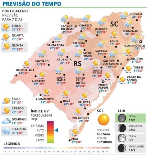 | Carnaval no RS tem dia quente e chuva isolada |