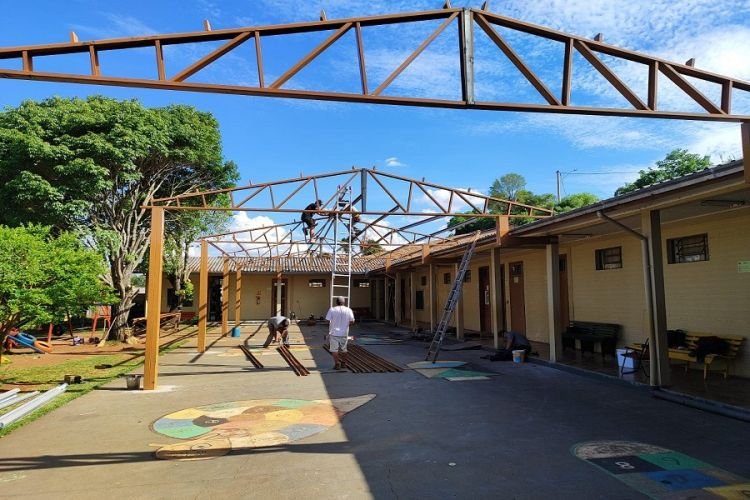 Pátio da Escola Municipal Dr Darvile Dall’Oglio em Jacutinga recebe cobertura |